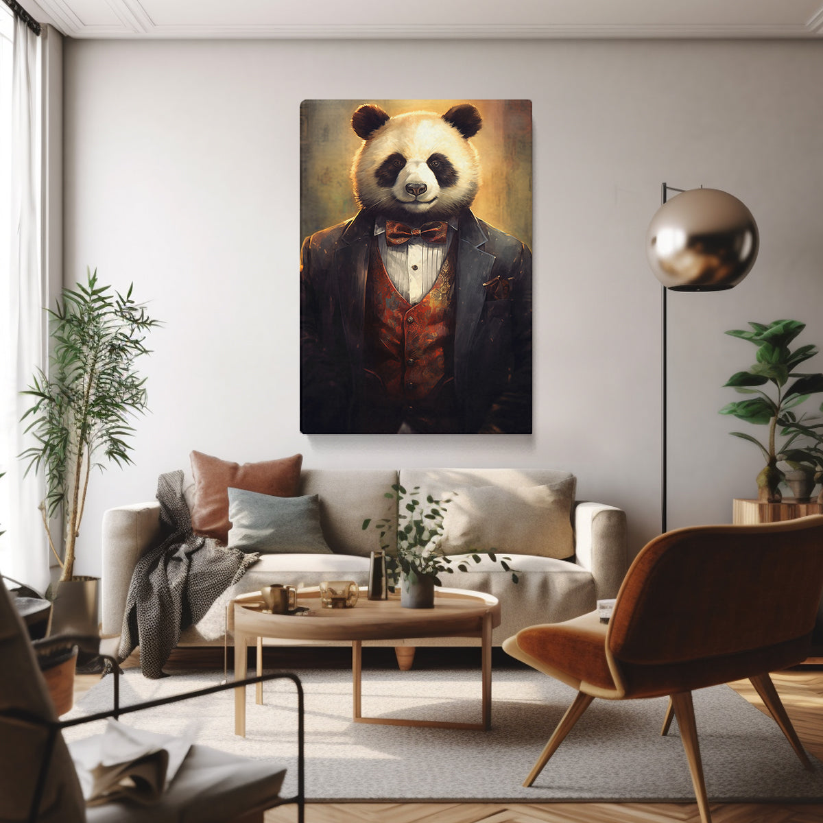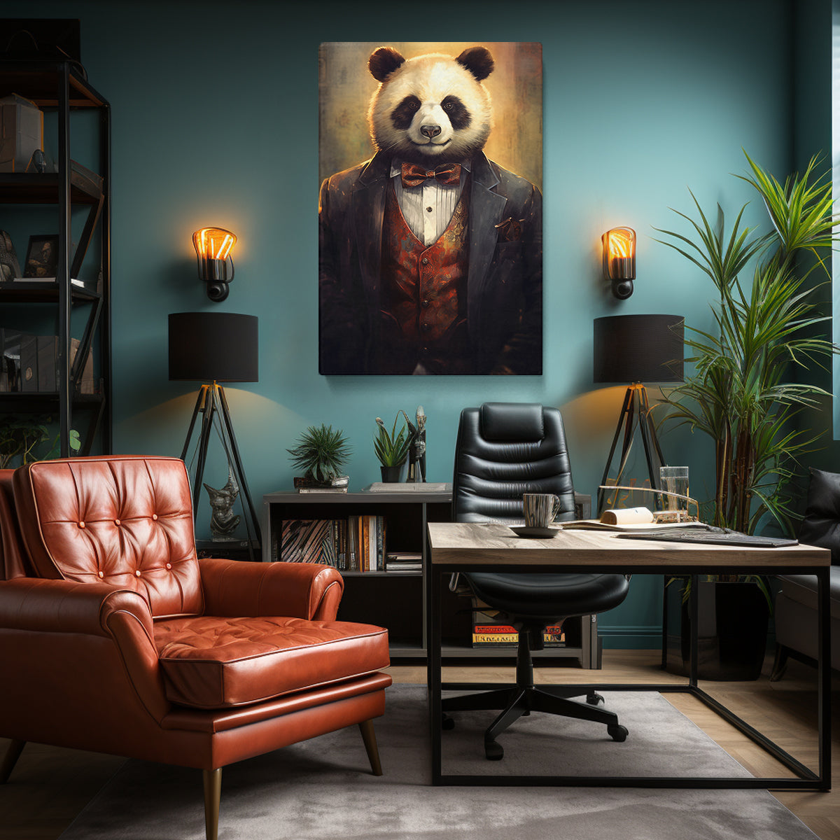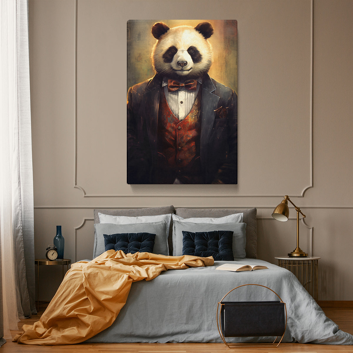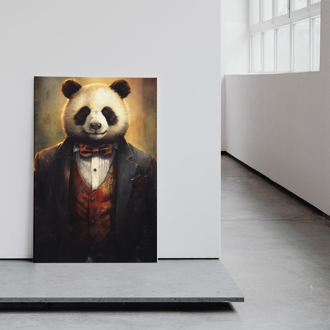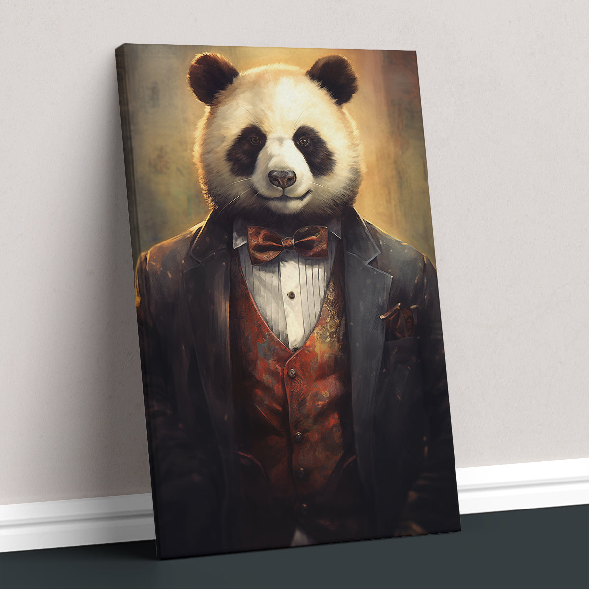 Panda Wall Art > Panda Canvas Print > Panda Canvas Art > Panda Artwork > Panda Art Print > Panda Painting > Panda Wall Decor > Panda Wall Hanging > Panda Prints > Dapper > Whimsy > Fashion > Stylish > Animal > Portrait > Unique > Humorous > Dress-Up > Suit > Whimsical > Artistic > Playful > Decorative > Charming > Sophisticated > Cheerful > Bold > Imaginative > Elegant > Modern > Creative > Fun > Impressive > Eye-catching > Dressed