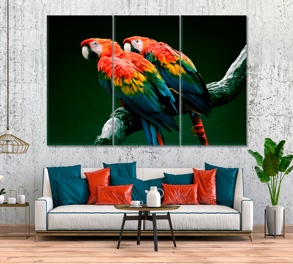 Pair of Red-and-Green Macaw Parrot